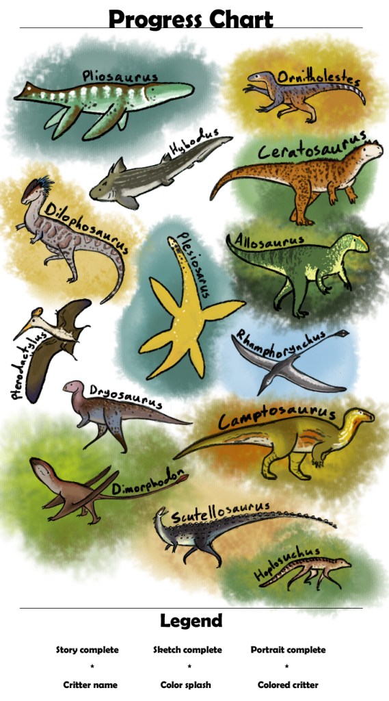 Making progress at a more “normal” pace should be easy once I get the insect series done. 😀 I’ll wait to do the creepy crawlies that are not insects (spiders, scorpions, and the like) for later. I’ve been itching to draw more dinosaurs again, and I want to get to the Morrison Formation. 😀