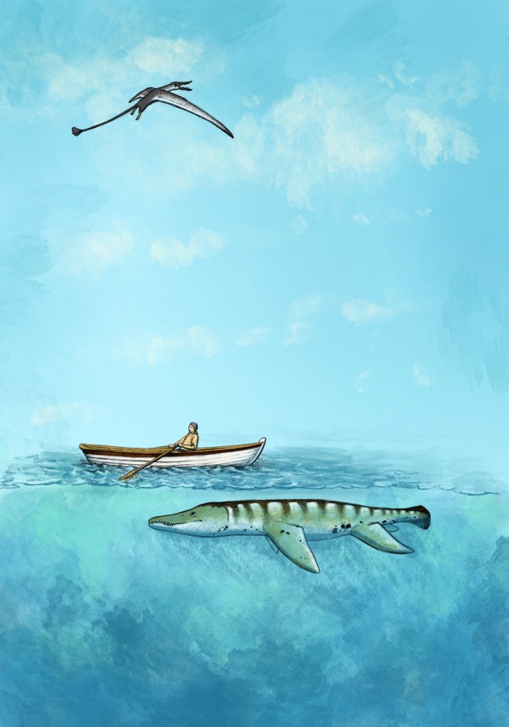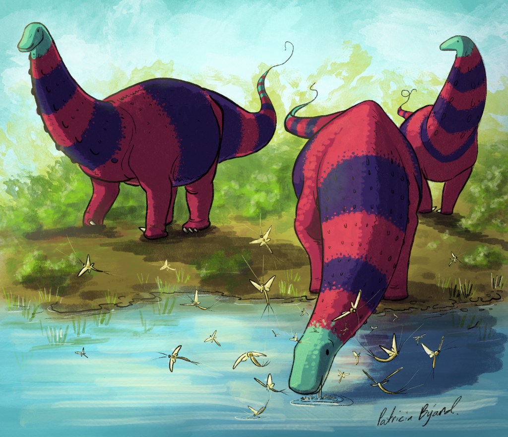 On Instagram I follow many other artists (mostly paleoart of course), and one of the lovely people I follow is Phoebe Ginger. She has a darling style in colored pencil, and these Brontosaurus are based on her adorable Bronto. It’s my entry for a contest Phoebe had on her Instagram: draw her Bronto in your style, and you get a chance to win one of her books!