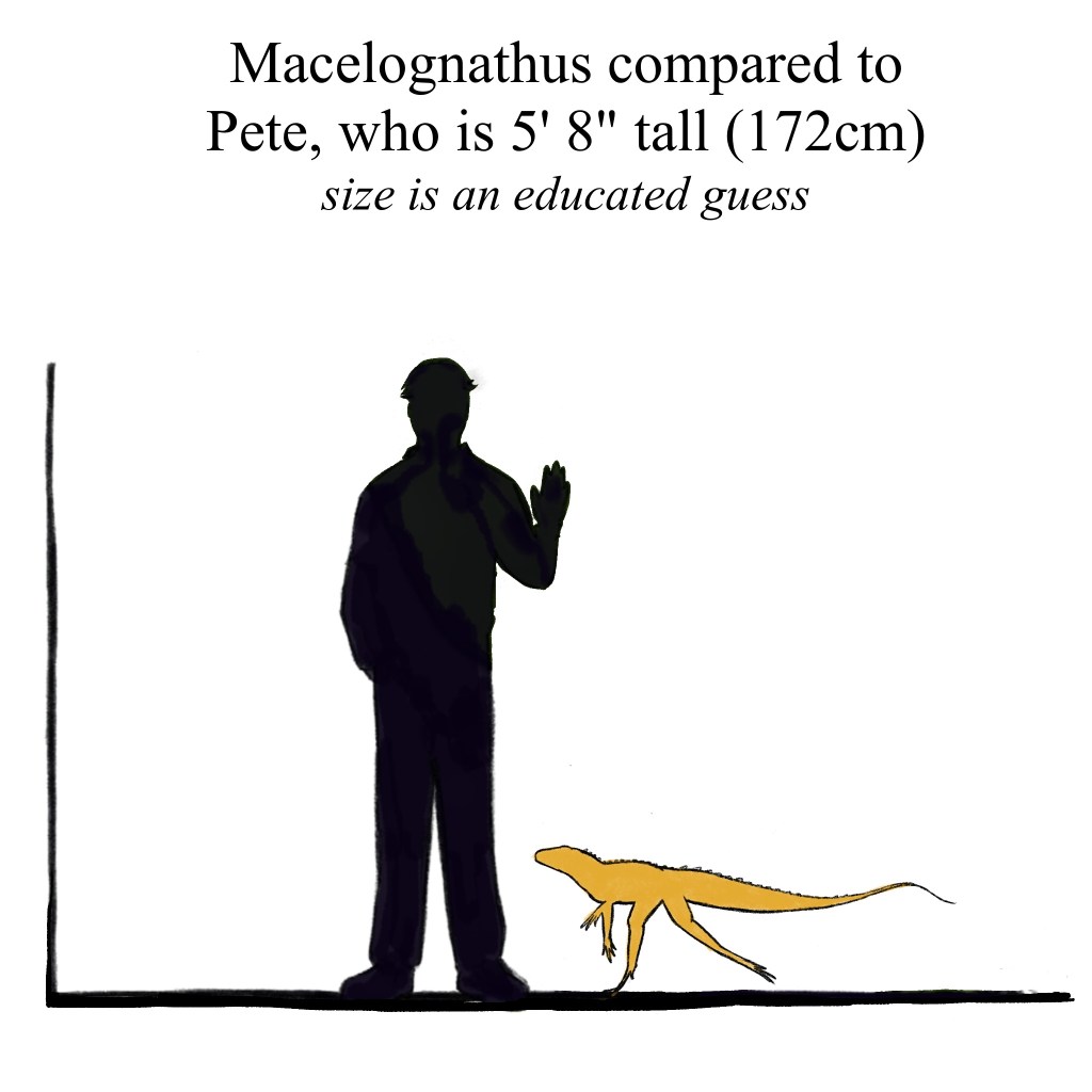 - Macelognathus was first thought to be a relative to turtles, but since then many have debated which family it would join for a family reunion. Dinosauria, Reptilia, Ornithischia (plant-eating dinos), Hypsilophodontidae (small, two-legged vegetarian dinos with beaks), and finally Crocodilians. More recent fossil finds place Macelognathus in a group closely related to crocodiles known as Sphenosuchia.