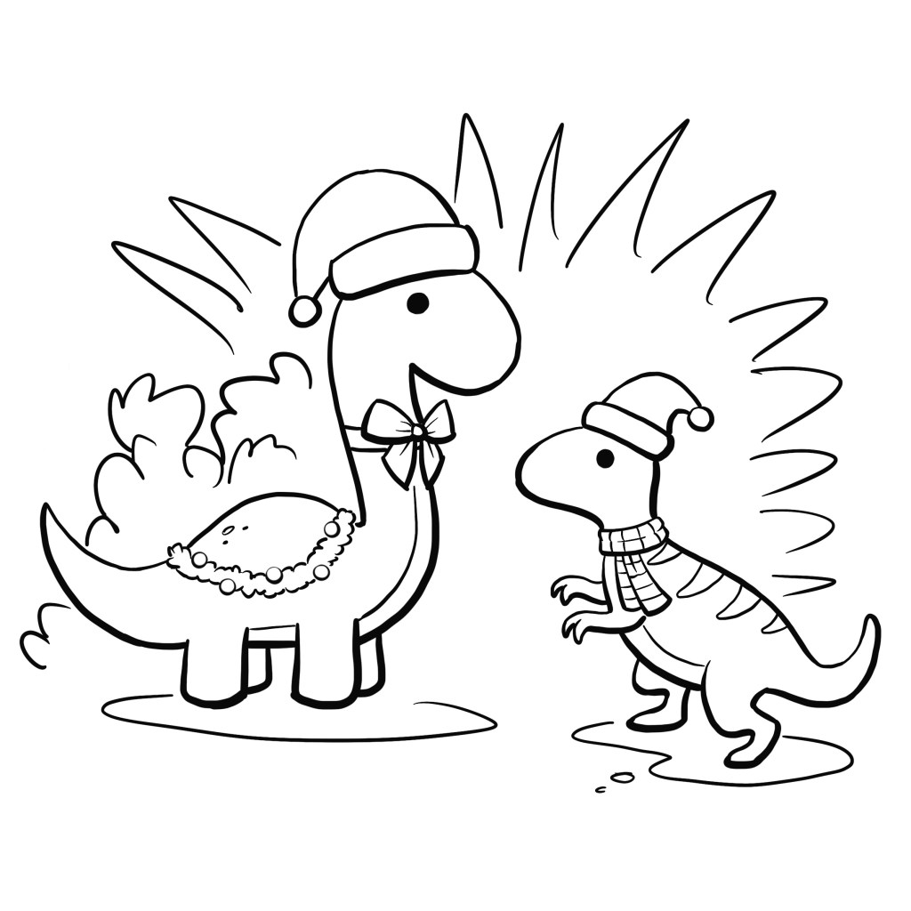 Santa’s elves always leave a little something homemade in the stocking, and this year they made little books (Of course, the kids have no idea that I am actually Santa’s primary “elf”). The book made for my youngest was a cute coloring book on how dinosaurs get ready for the winter holidays. I hope you enjoy a little prehistoric holiday cheer with these coloring pages! šŸ™‚