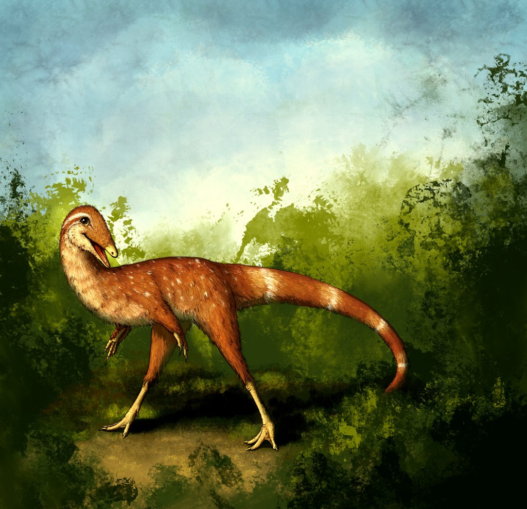 On the other hand, we also have other relatives of Compsognathus (and possibly skin imprints on Compsognathus itself, though I’m not sure on that) that appear to have scaly skin. Some have said that scaly skin doesn’t rule out feathers, especially since these impressions come from areas like the legs, underside of the tail, or belly. Others claim to see faint impressions of feathers on some of these fossils as well as the scales (visible under UV light), so it’s possible that what appears scaly is an artifact of decomposition. Bottom line, there is nothing absolutely certain in a lot of these smaller dinosaurs, and so artists are free to experiment with appearance.