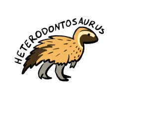 Many modern illustrations show Heterodontosaurus a bit like nimble, two-legged porcupines. Including mine. This is because of a relative called Tianyulong, which preserves long filaments like bristles from its neck to its tail. With this lovely fossil, combined with other small herbivorous dinosaurs also preserving filaments and various levels of fluff, then it is very likely that Heterodontosaurus was also in the rank of fuzzy dinos.