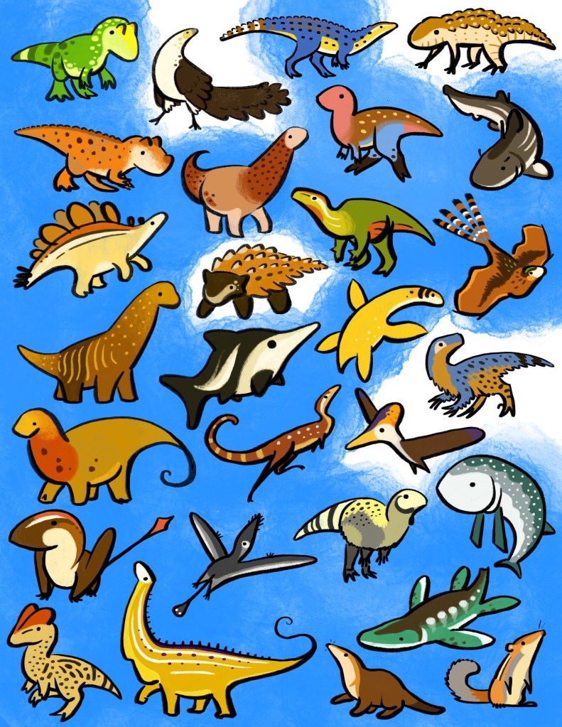 What holds all the books in the series together? Is it a question that holds them all together, or something else about the title? Should each book focus on the “first” critters in each time period? 1st bird, 1st fish, etc…Should each book end with a kid walking away with some modern critter that has its roots in that time period? Rudimentary stories, possible scenes, or concept sketches are allowed, but limited. This exercise is meant to be a path to keep in mind as I move forward, not a way to procrastinate. Once I have a basic idea that I am happy with I am not allowed to go deeper until later. This prevents me from going down the rabbit hole of research, especially with the time periods I know very little about. I only allow enough research to understand the most important milestones of each time period.