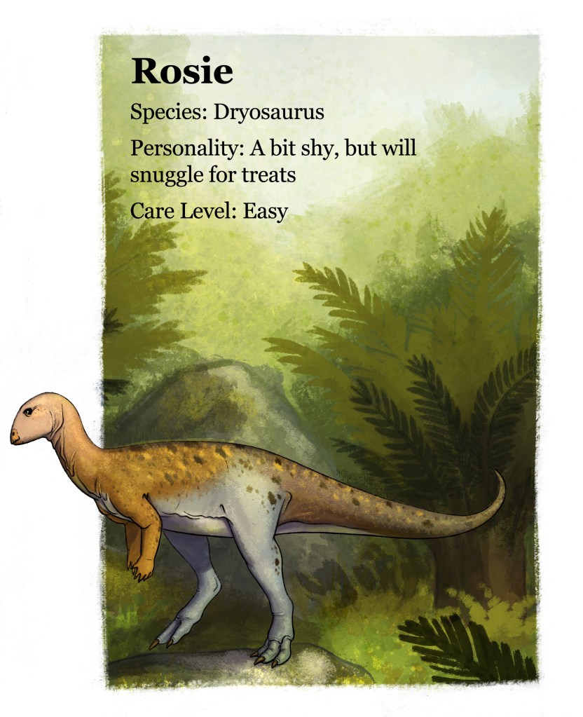 Rosie ended up getting a full make-over instead of just a reworking of her lines. I’m enjoying these more realistic backgrounds, and I’m trying to really stretch into using different brushes for texture. For this painting I also put a lot of focus into making the silhouettes of my subject more clear. I still ended up getting some of the foliage a little muddy, but hopefully I managed to fix that with the shadowy branches at the end there.