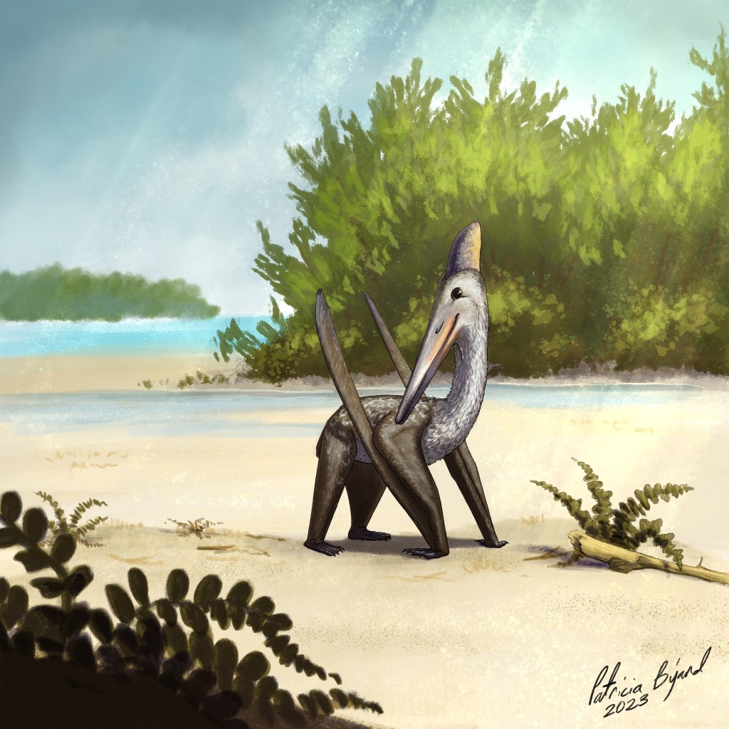 I imagine Pterodactylus scuttling along the beach in search of sand crabs, or wading into puddles for dragonfly nymphs or worms. Perhaps, like many seabirds, a whole flock of them could be seen hunting in the shallows.