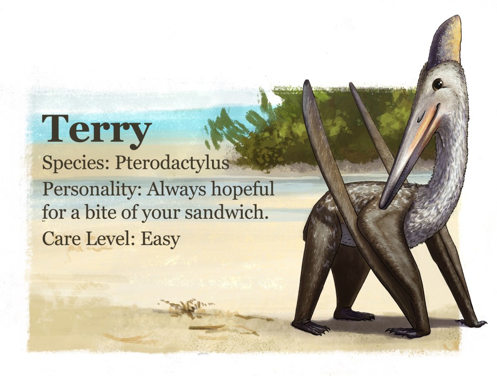Of course, I’m not a pterosaur expert, so this is just speculation. I like to imagine Terry with similar, birdlike mannerisms, even though she walks with four legs instead of two. Can you picture it in your mind’s eye while watching the clips down below?