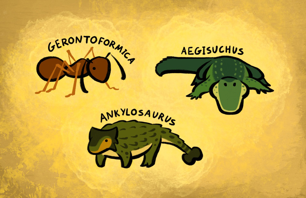 Many of these critters are also tiny in their own way. Some started out as the first in their family to be discovered, small beginnings for a great legacy. Others are known from only a single fossil, the only thing we have to even know they existed in time. And of course some are tiny in size, and could fit inside polished amber set on a ring…