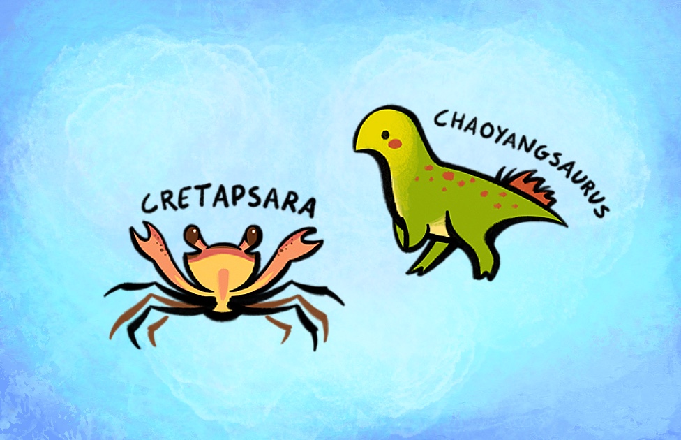 Cretapsara is known as the first crab, and was discovered in Early Cretaceous Burmese amber. It is only a few millimeters wide, and perfectly preserved in amber even with the gills that helped it breathe in water.