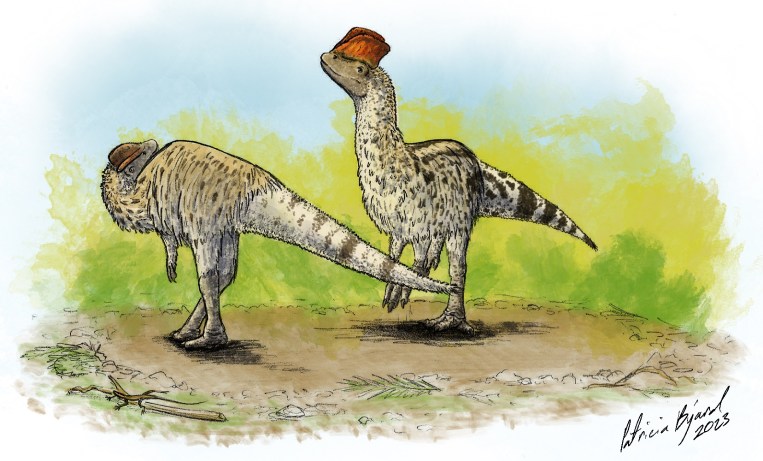 So why not assume Dilophosaurus had already lost the fluff, when it’s clearly much bigger than tiny dinos that we assume would need fluff for regulating body temperature? Well, aside from the simple fact that I love the idea of a big fluffy Dilo, there are more scientific reasons.
