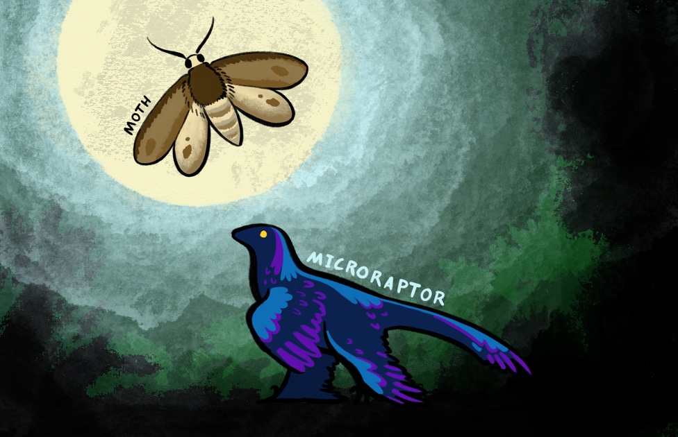 M is for Microraptor and a Moth on a Misty, Moonlit night…