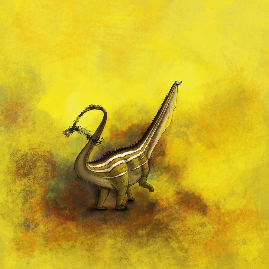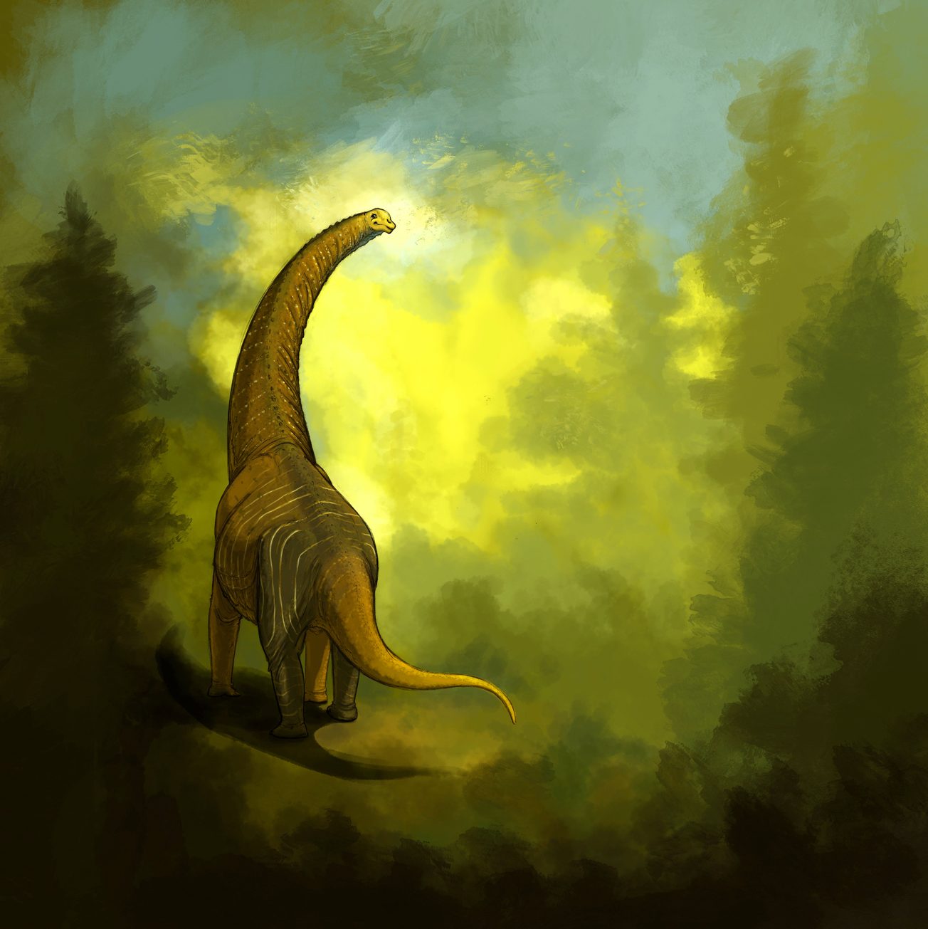 A happy Camarasaurus enjoys a little alone time away from her herd for a moment of sunshine.
