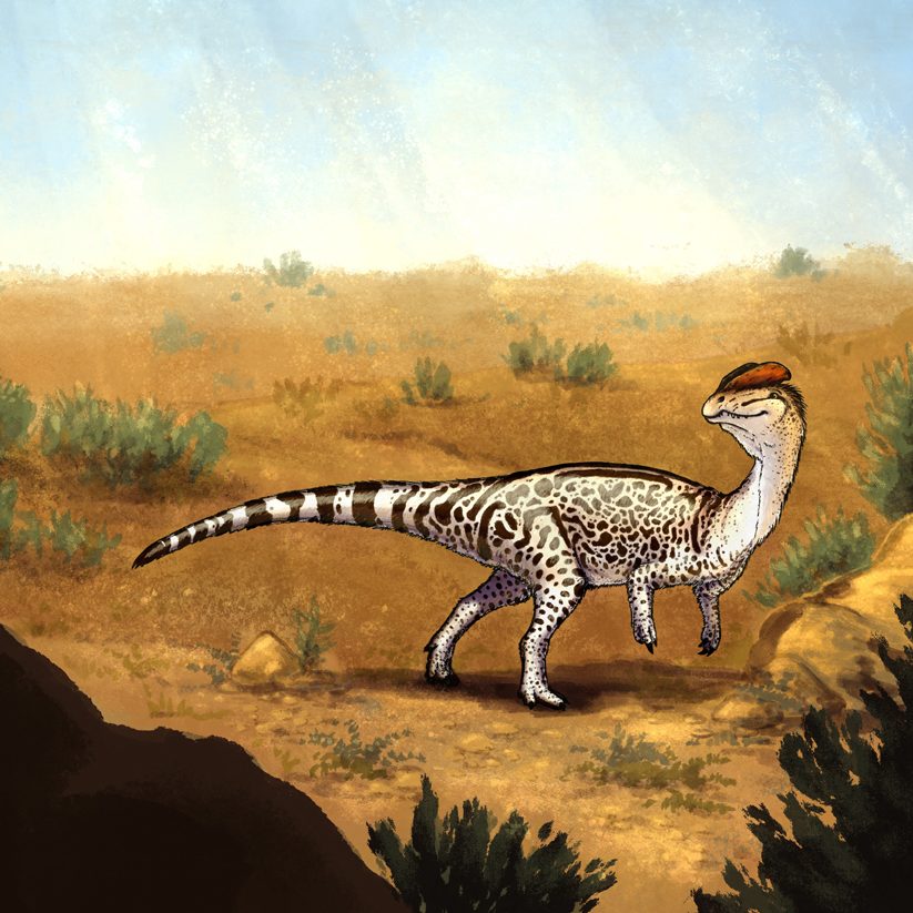 A sunny afternoon is the perfect time for a stroll through the brush with a happy Dilophosaurus.